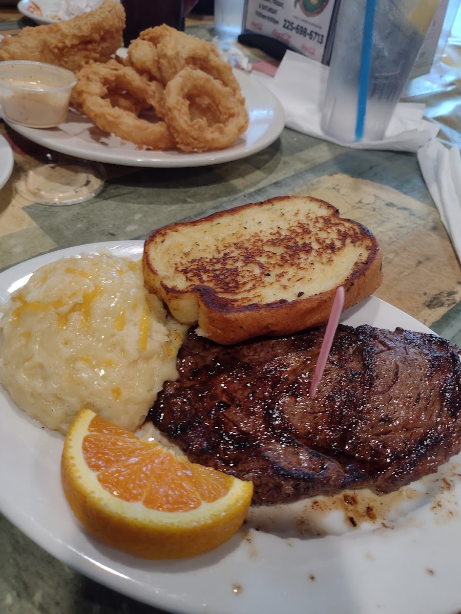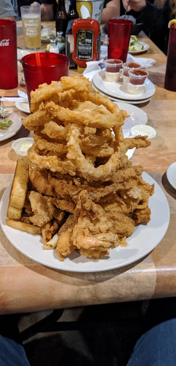 Went in via the water for lunch. You MUST get the onion rings! Simply the best we’ve ever had! A great crispy crunch on the sweetest onions! We got the lunch special which was a cup of crawfish pepper corn soup (Ah-mazing!), coleslaw, fried catfish (so crispy and tasty), fries and hush puppies. A truly delish lunch!