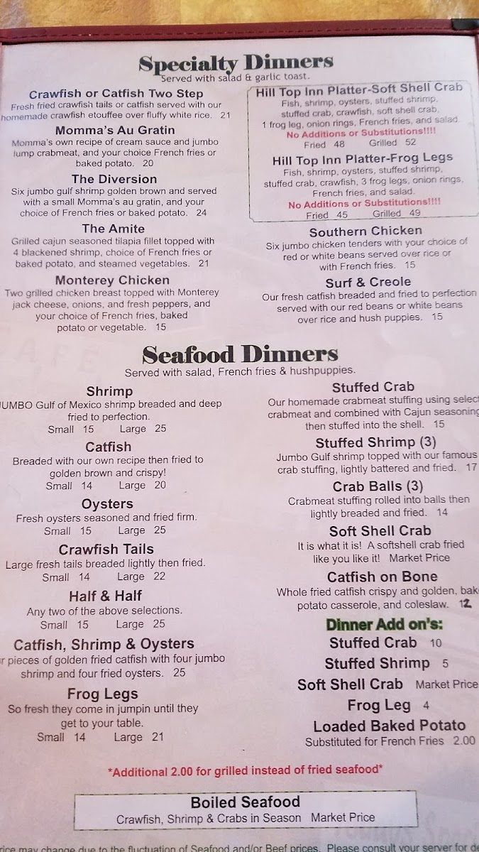 Hill Top Inn Menu
